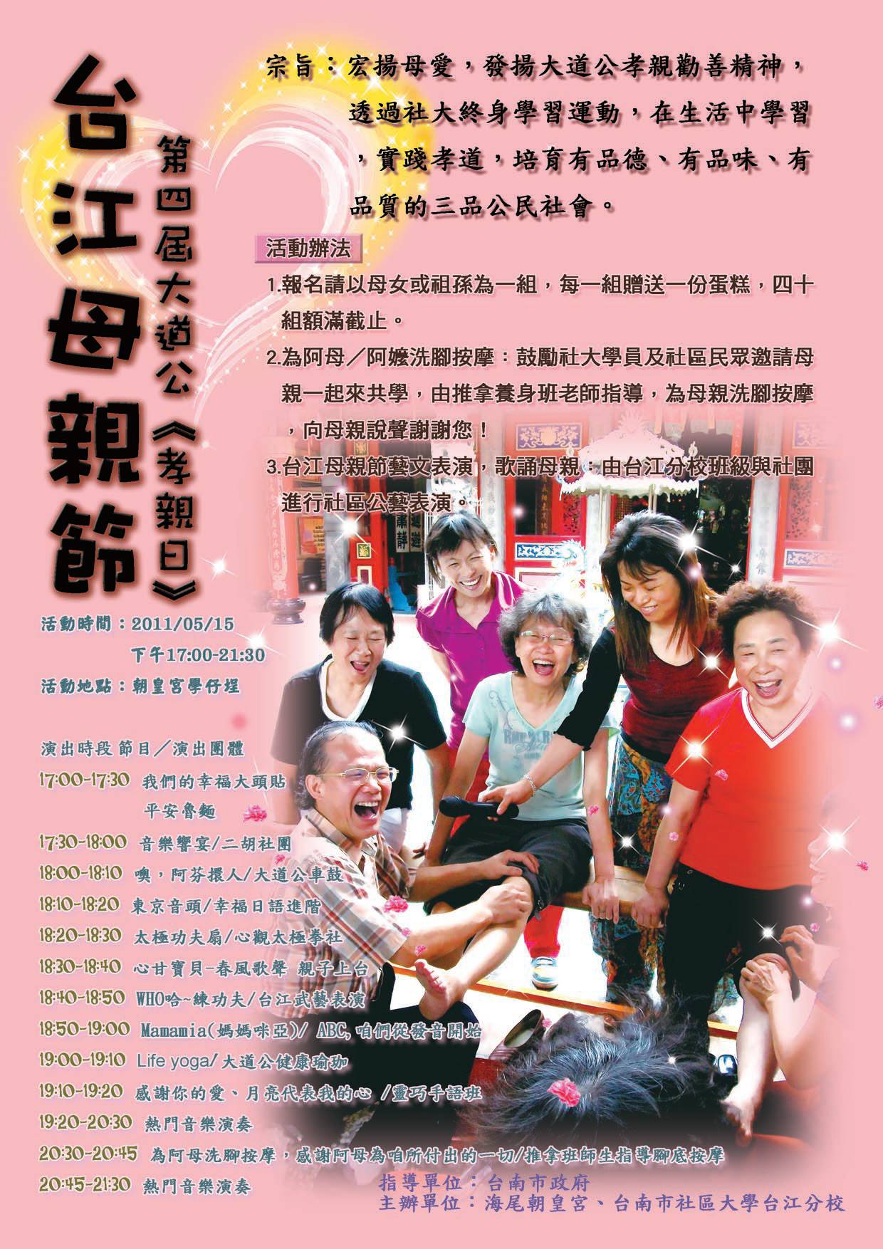 3.          台江母親節藝文表演:由台江分校班級與社團進行社區公藝表演,